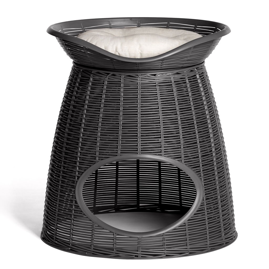 Pevný plastový pelech v elegantnom prútenom dizajne pre mačky a malé psy. Farba biela, výška 55 cm.