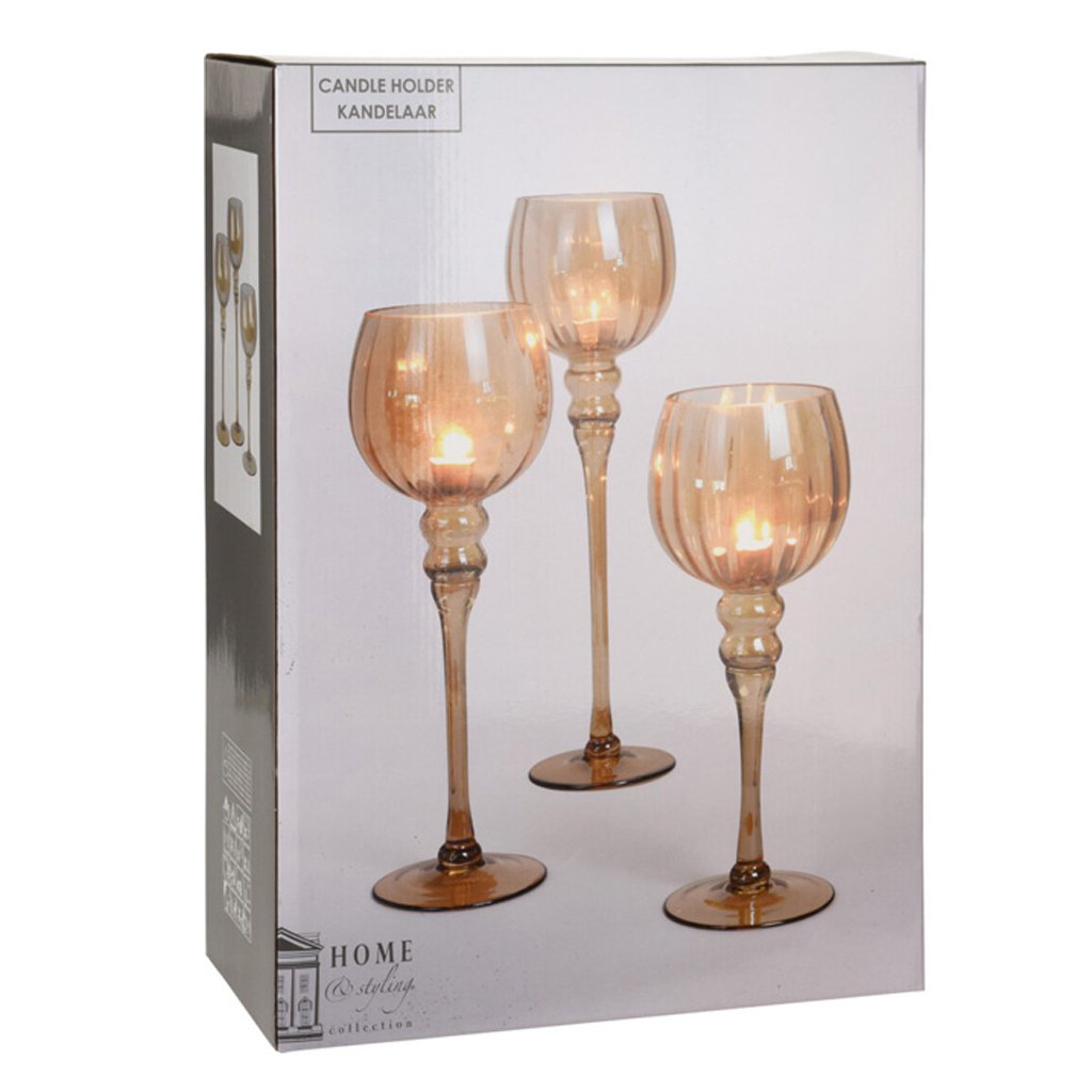 Sklenený svietnik Amber, sada 3 ks, farba jantárová