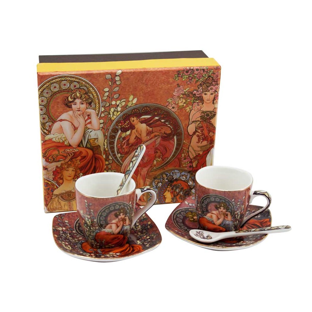 Exkluzivní porcelánový set, který je díky svému objemu 100 ml určený především na espresso. Design této sady je z kolekce slavného českého maléře Alfonse Muchy.