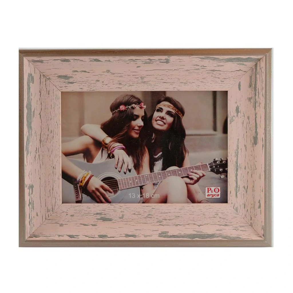 Plastový rámeček na fotografie v dřevěném dekoru. Lze postavit na stůl nebo pověsit na zeď. Součástí fotorámečku je krycí sklo a stojánek.