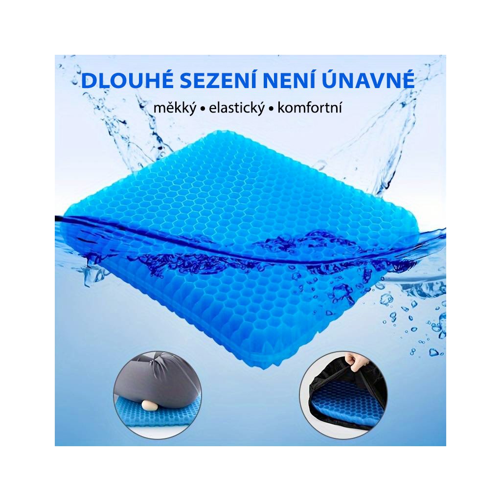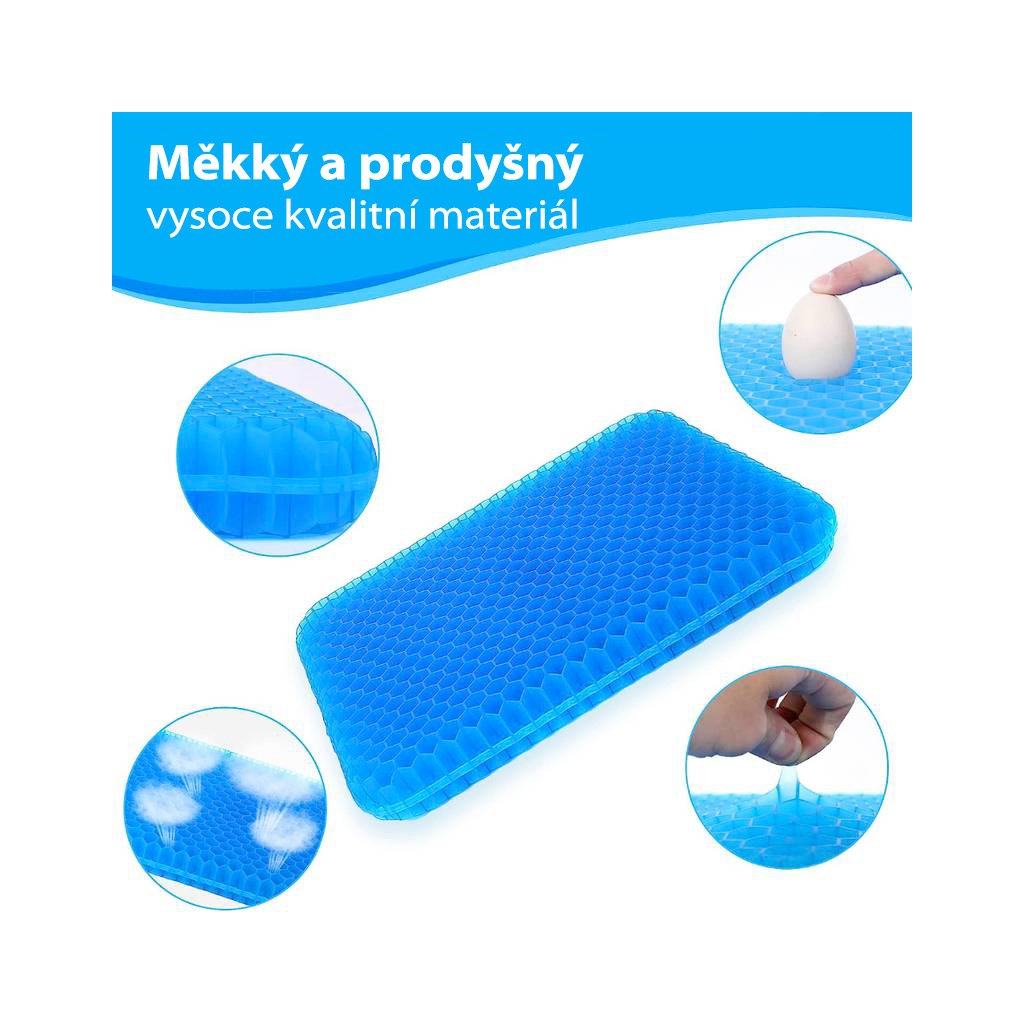 Gélový podsedák je vyrobený z ortopedickej gélovej peny s vysokou hustotou materiálu. Je ideálny do práce, domov, auta, vhodný aj pre profesionálnych vodičov alebo pri dlhých športových či filmových prenosoch.