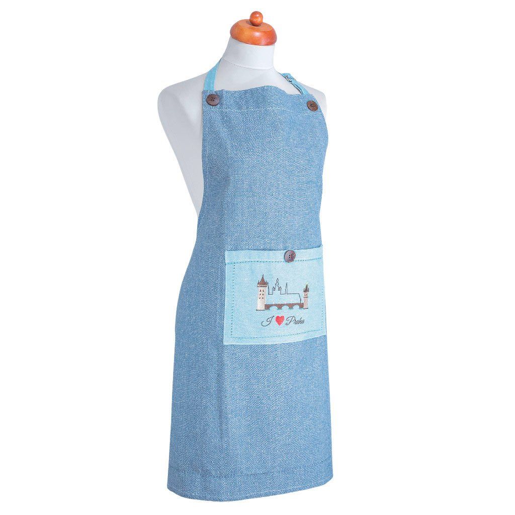 ChatGPT řekl: Kuchynská zástera pánska, svetlomodrá a tmavomodrá, výšivka Karlov most
