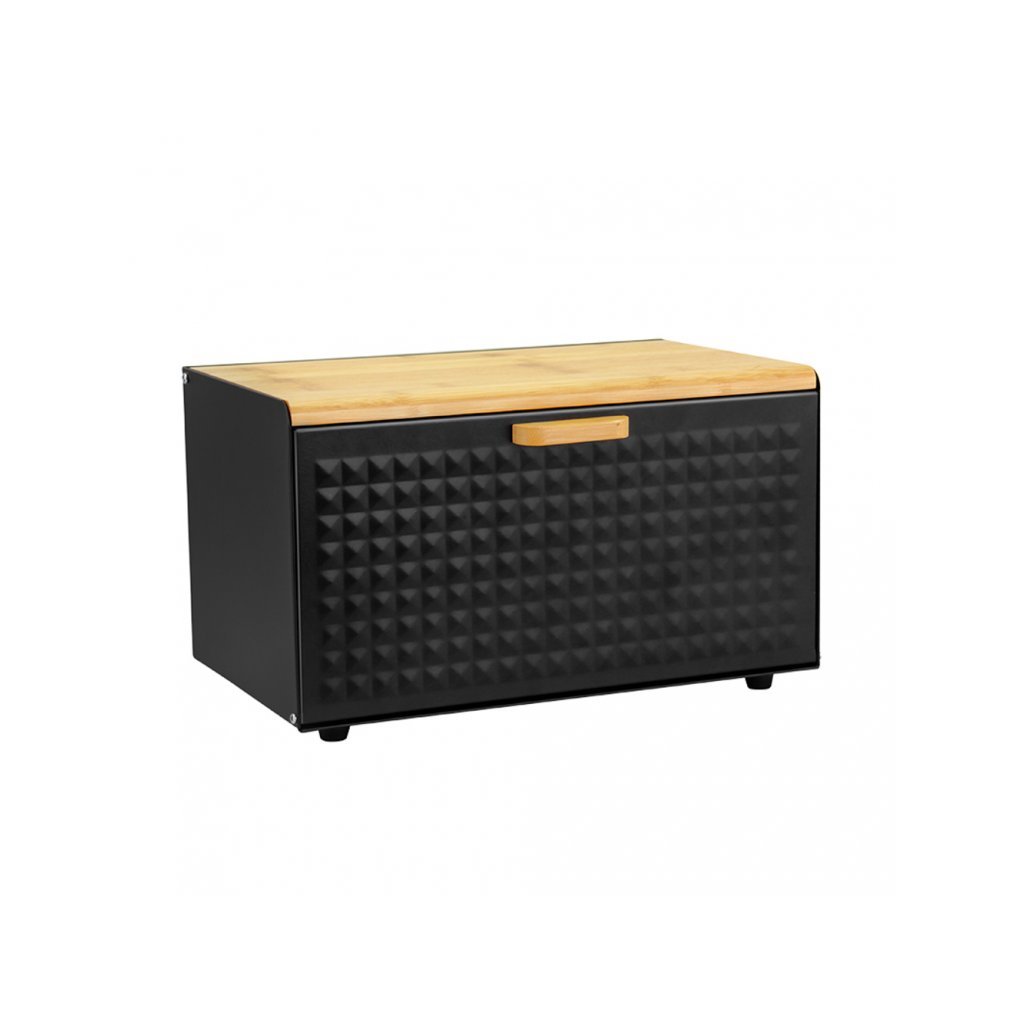 Štýlový a praktický chlebník je ideálnou voľbou do každej modernej kuchyne. Kombinácia čierneho kovového tela a prírodného bambusového veka dodáva elegantný vzhľad a zároveň zabezpečuje optimálne podmienky na uchovávanie pečiva.