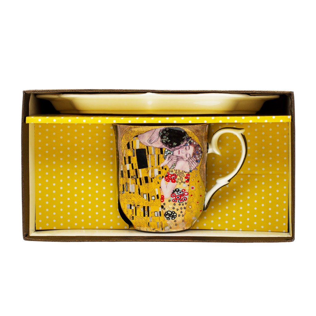 HOME ELEMENTS Hrnček 360 ml, s podšálkou, Klimt, Bozk, zlatý bozk