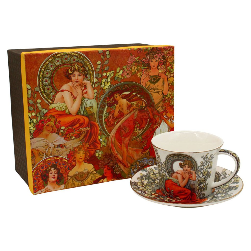 Na porcelánovom hrnčeku môžete obdivovať nádherný dekor z diela Alfonsa Muchu. Hodí sa na čaj aj kávu a bude ozdobou každého stola.