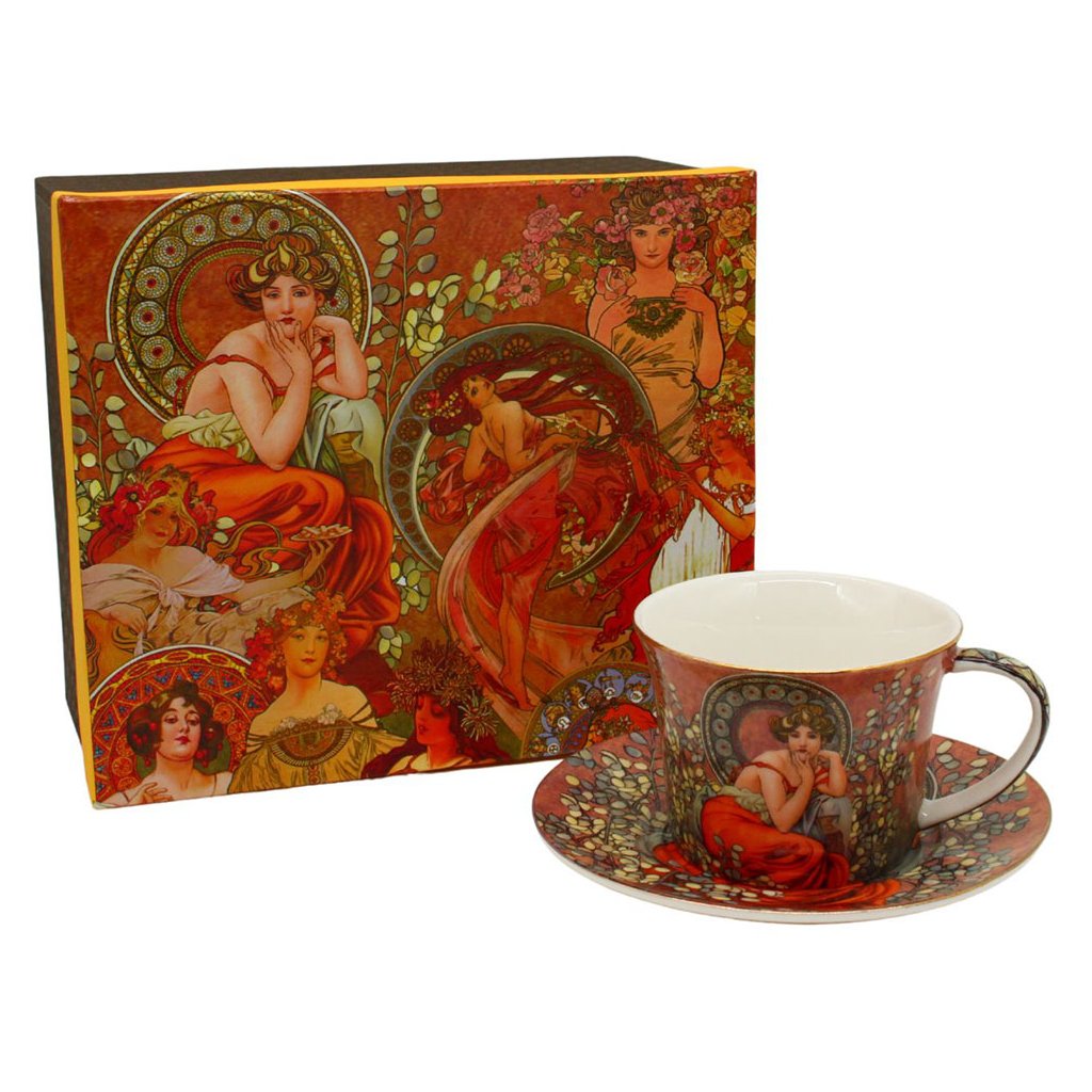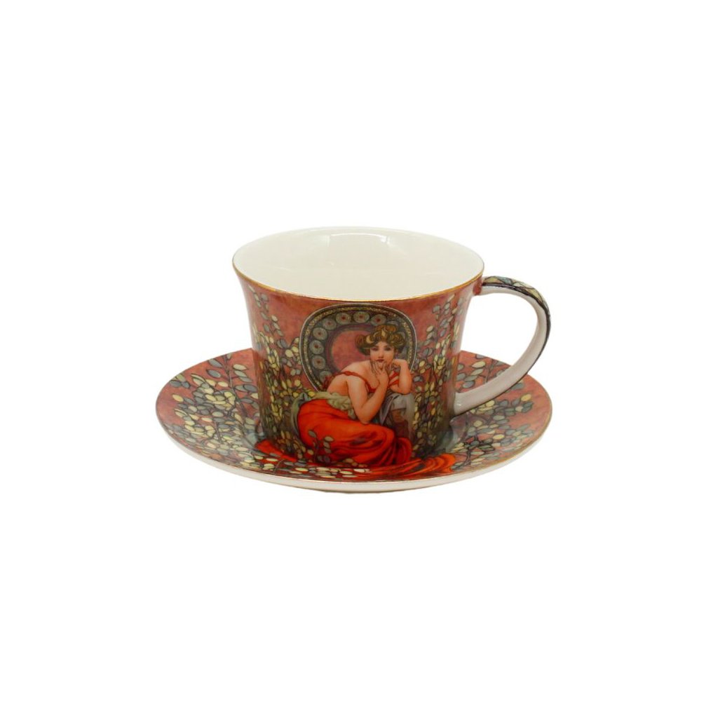 Na porcelánovom hrnčeku môžete obdivovať nádherný dekor z diela Alfonsa Muchu. Hodí sa na čaj aj kávu a bude ozdobou každého stola.