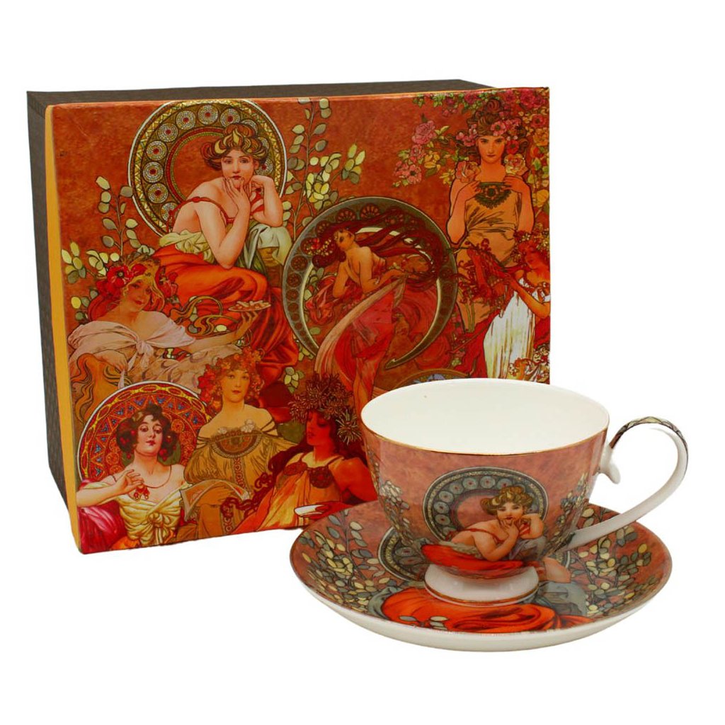 Na porcelánovom hrnčeku môžete obdivovať nádherný dekor z diela Alfonsa Muchu. Hodí sa na čaj aj kávu a bude ozdobou každého stola.