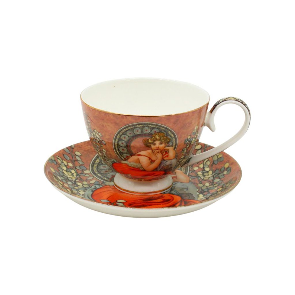Luxusná porcelánová šapo súprava šálky a podšálky 250 ml, dekor z diela Alfonsa Muchu