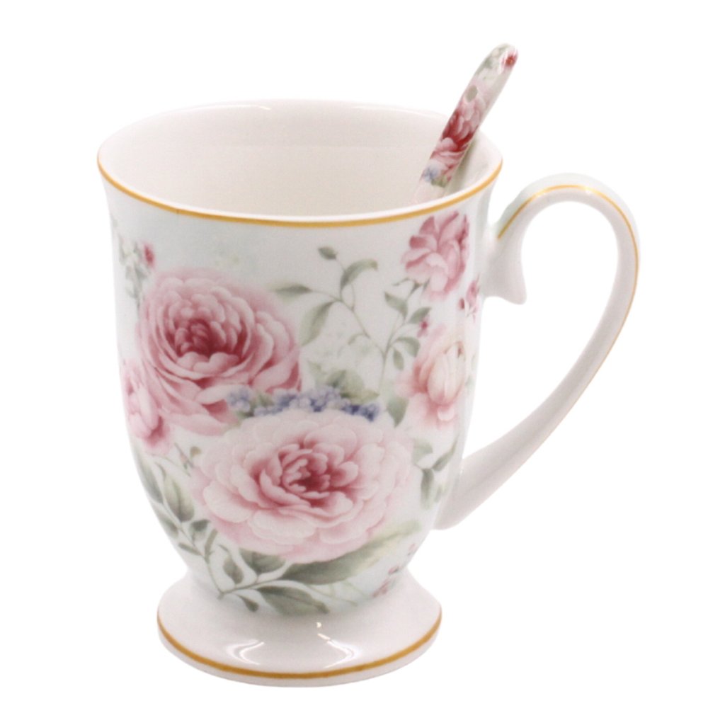 Krásny porcelánový hrnček s lyžičkou a jemným kvetinovým dekorom vám navodí slávnostné chvíle pri pití čaju alebo iných nápojov. Hrnček je zabalený v darčekovej krabičke.
