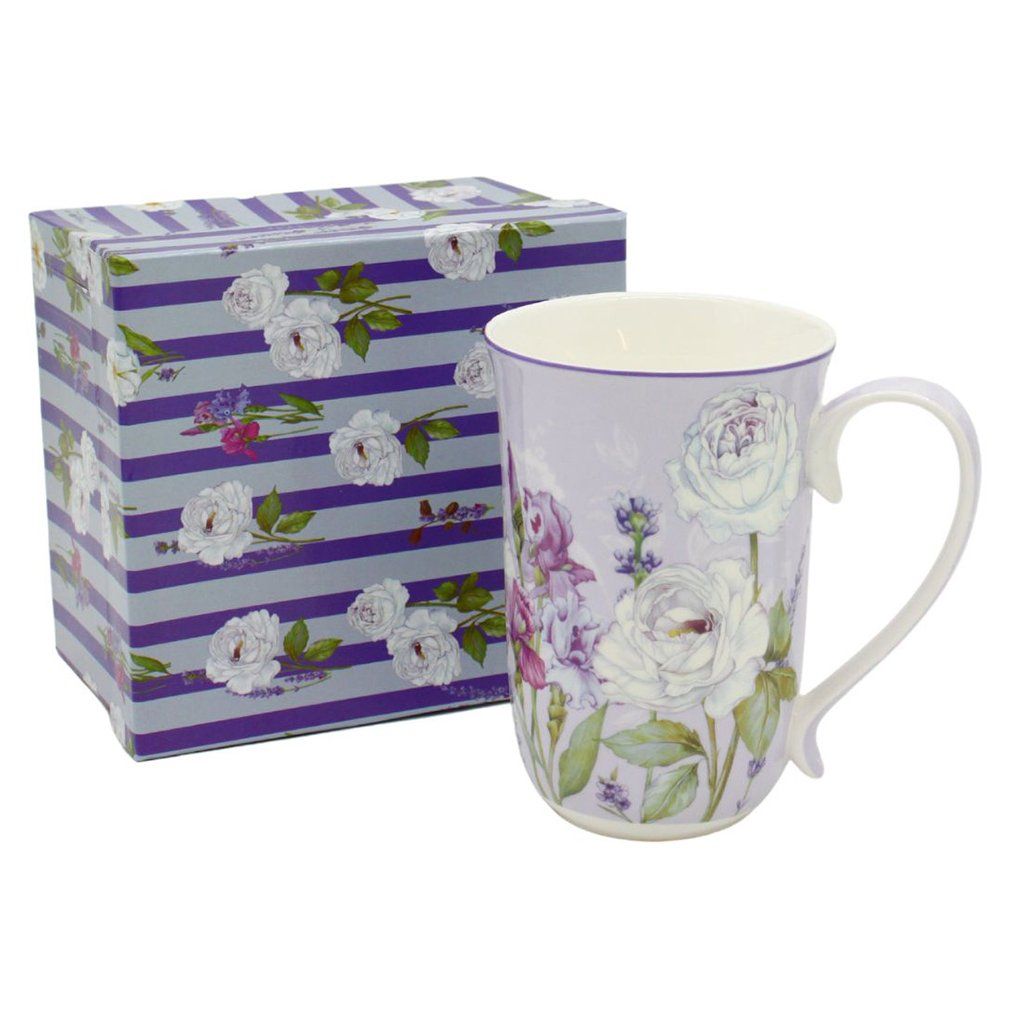 Porcelánový hrnček s objemom 400 ml s kvetinovým dekorom s levanduľou. V darčekovej krabici.