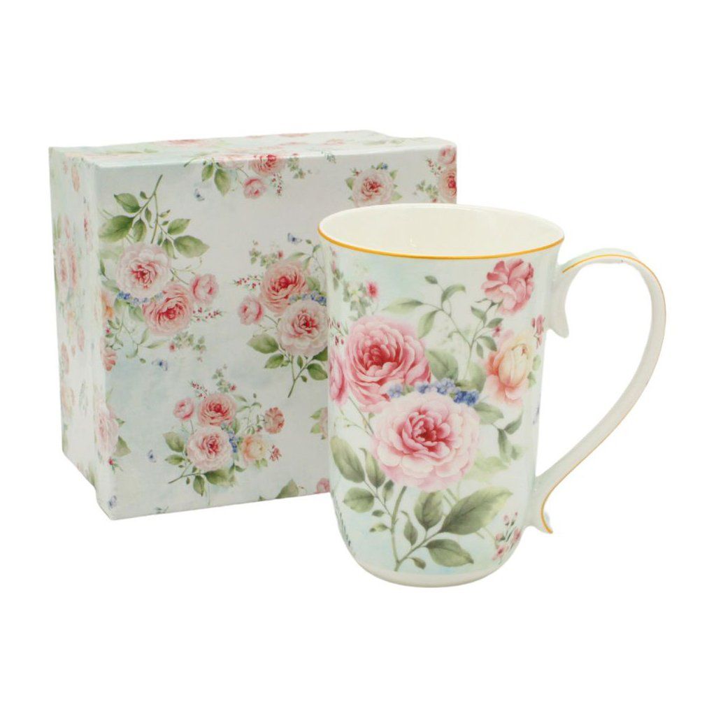Porcelánový hrnček s objemom 400 ml s dekorom kvetu ruže. V darčekovej krabici.