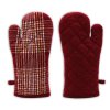 Kuchynská rukavica má všitý magnet a pútko na zavesenie podľa potreby. Jedna strana má károvaný vzor, druhá strana je jednoliata červená.