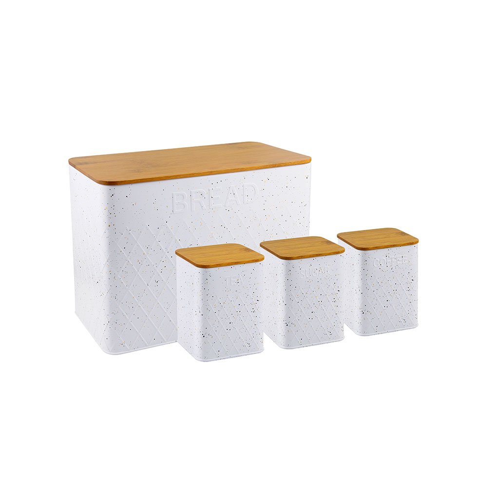 Chlebník v modernom prevedení s vysoko odolnou lakovanou vrstvou a bambusovým drevom. Box na chlieb je dodávaný navyše s tromi dózami na potraviny. Farba čierna.