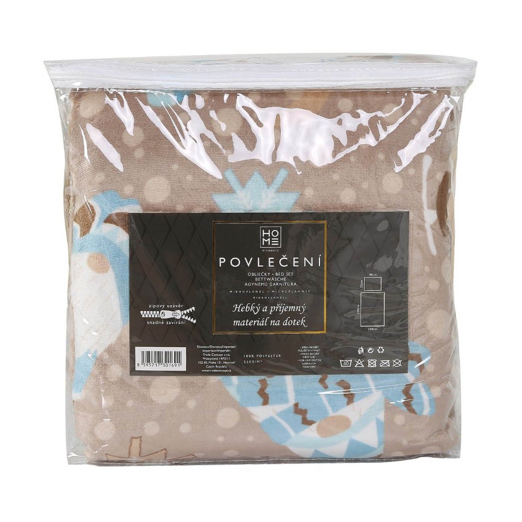 Mikroflanelová posteľná bielizeň, rozmer 140x200 + 70x90 cm, béžová a tmavohnedá