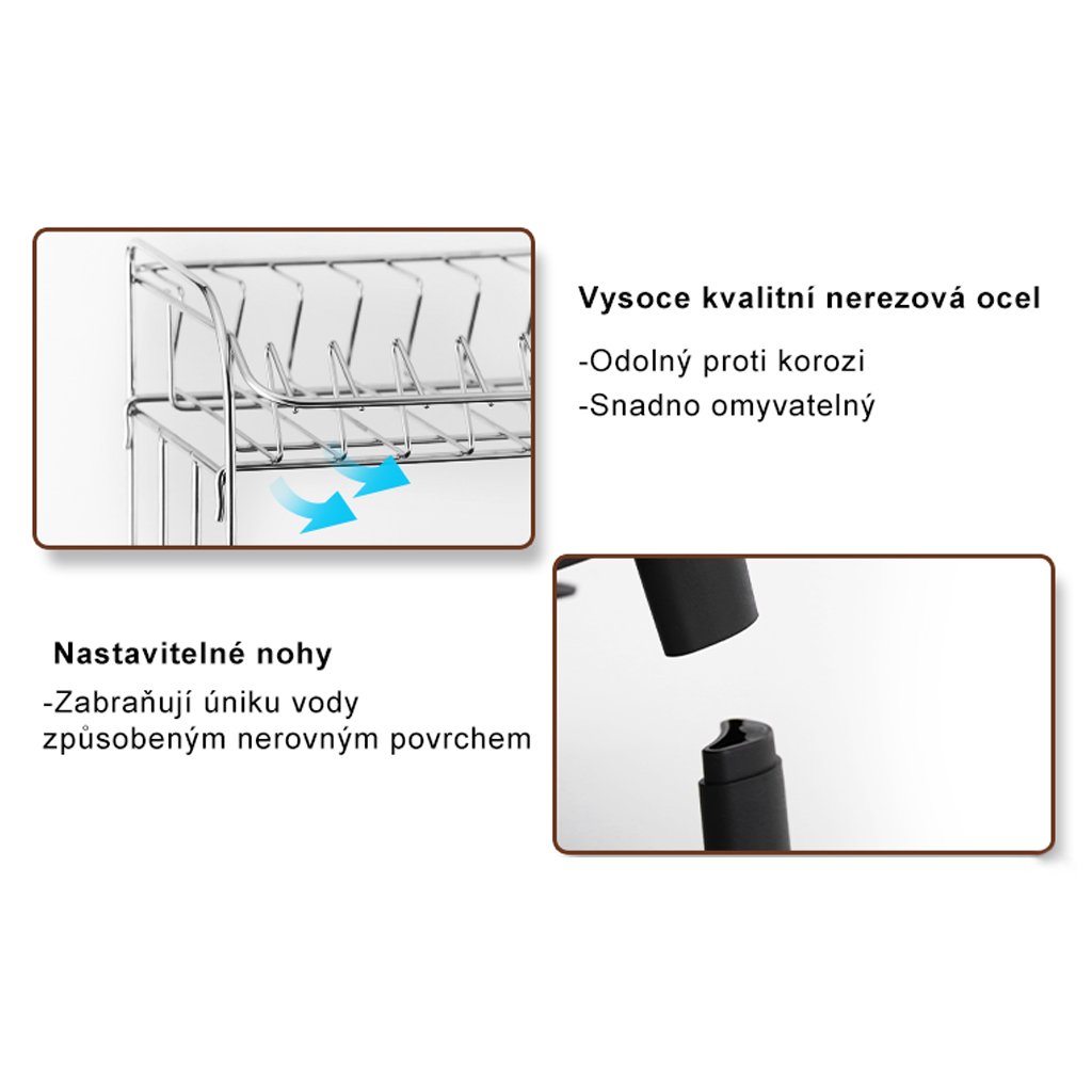 Multifunkčný odkvapkávač na riad s nástavcom. Rozmer 47x33x22,5 cm.