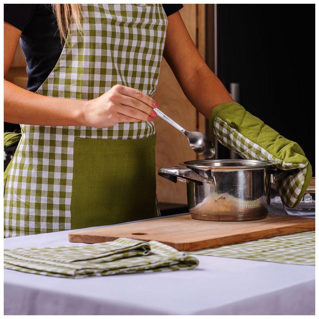 Štvorcový bavlnený podsedák v zelenej farbe. Vychutnajte si lepšie pohodlie pri sedení. Tradičný károvaný vzor sa hodí do každej kuchyne, môžete ho doplniť ďalšími kuchynskými textíliami s rovnakým vzorom a farbou. Vaša kuchyňa bude dokonale zladená.