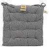 Pohodlný dekoračný podsedák na stoličku do kuchyne alebo na záhradu v praktickej čiernobielej kocke. Výrazný útulný bytový doplnok, ktorý zvýši vaše pohodlie pri sedení a ochráni vás pred chladom. Podsedák sa k stoličke pripevňuje pomocou šnúr rovnakej farby.