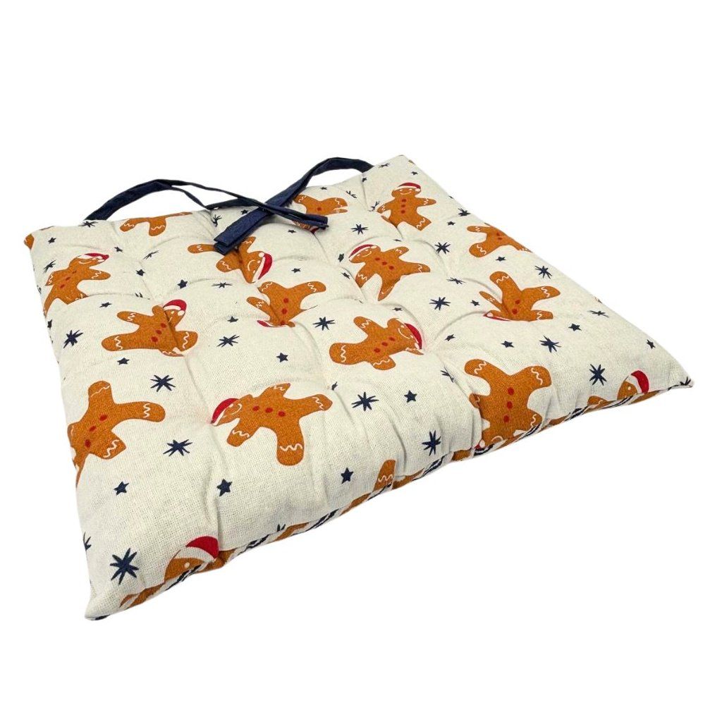 Prešívaný podsedák s vianočným motívom červeného imela je vhodný do každej kuchyne alebo záhrady. Poskytne pohodlnejšie sedenie na tvrdej stoličke alebo lavici, teplo a útulnosť priestoru. Vankúšik na sedenie sa dá použiť aj pre malé deti, napríklad aby im pomohol dosiahnuť na stôl pri jedle.