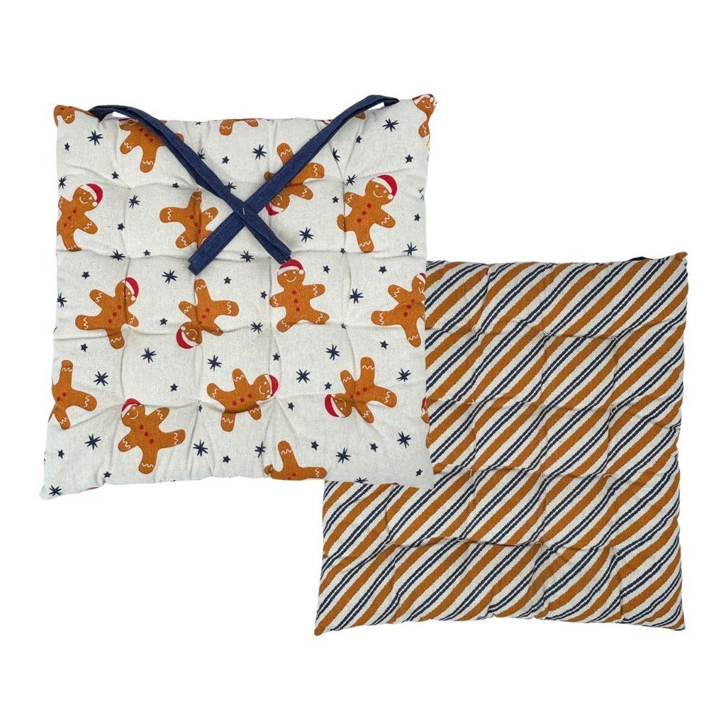- Jedna strana podsedáku je potlačená perníkom, druhá strana modrými, hnedými a bielymi pruhmi.