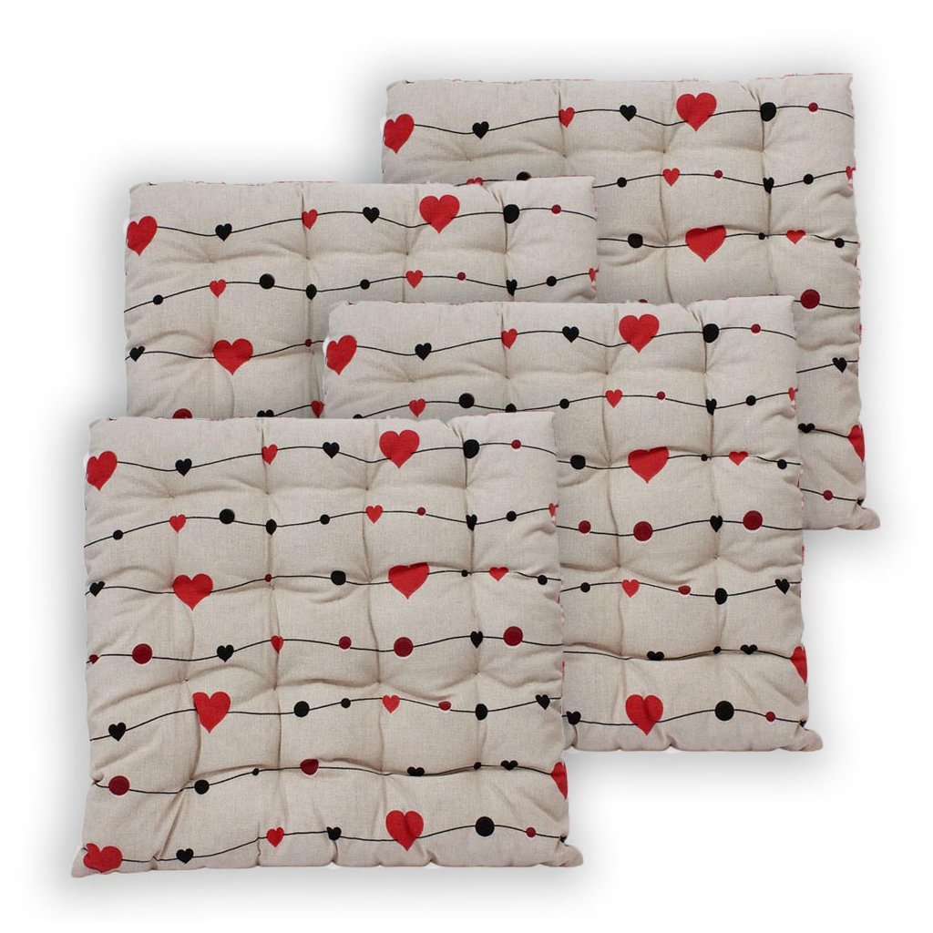 Pekný prešívaný podsedák je určite pohodlnejší a príjemnejší na sedenie. Môžete ho používať na terase, v záhrade alebo doma v jedálni. Motív červených srdiečok na jednej strane sedacieho vankúša pôsobí hrejivo a robí domov domovom.