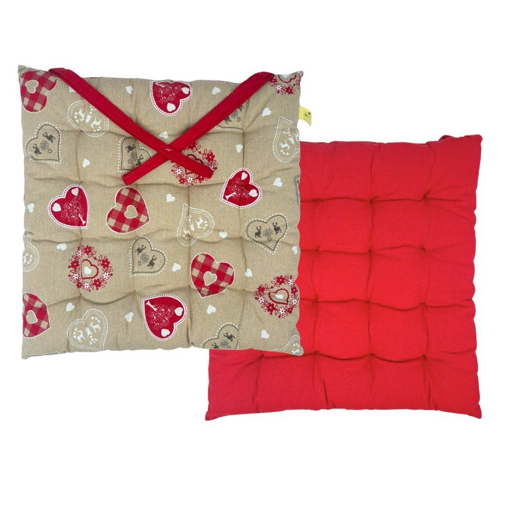 Prešívaný podsedák s vianočným motívom červeného imela je vhodný do každej kuchyne alebo záhrady. Poskytne pohodlnejšie sedenie na tvrdej stoličke alebo lavici, teplo a útulnosť priestoru. Vankúšik na sedenie sa dá použiť aj pre malé deti, napríklad aby im pomohol dosiahnuť na stôl pri jedle.