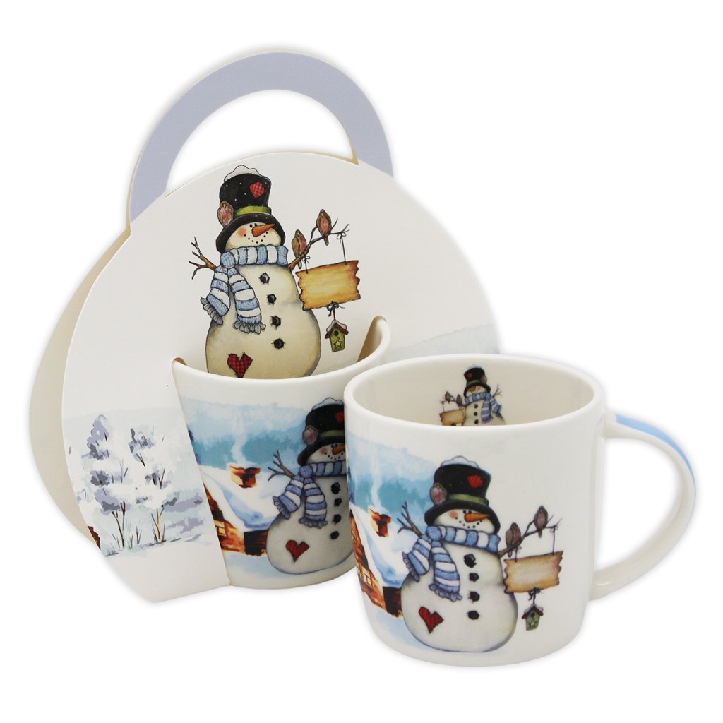 Porcelánový hrnček 300 ml v darčekovom vrecku s pútkom, Snehuliak