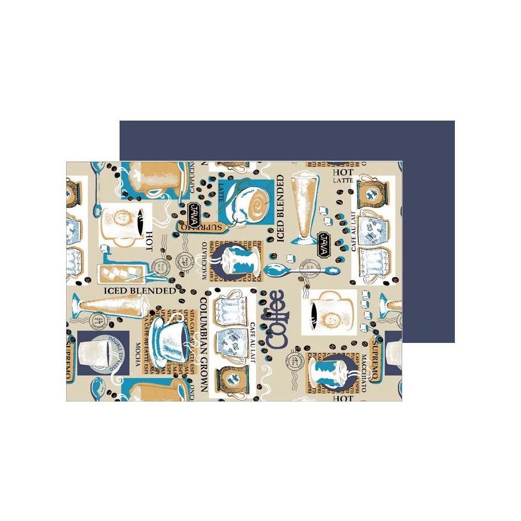 - z jednej strany tmavo modrej, z druhej strany s motívom kávy