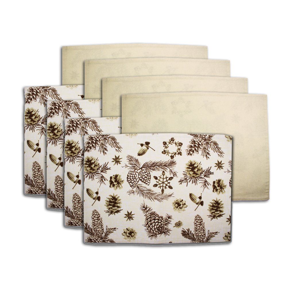 Krásne prestretý, úhľadný a čistý jedálenský stôl je vizitkou domácnosti. Z praktických dôvodov prispievajú ku krásnemu stolovaniu aj podložky. Ponúkame pevné textilné prestieranie s decentným, elegantným vzorom vianočnej šišky.