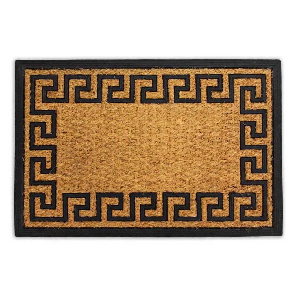 Rohožka z kokosového vlákna a gumy pred vchodovými dverami, na terase alebo balkóne je dôležitým nástrojom na udržiavanie čistoty v domácnosti. Každý, kto príde, si môže ľahko vyčistiť podrážky topánok. Spodná strana rohože je vyrobená z recyklovanej gumy a dobre prilieha k podlahe. Rohožka je v prírodnej farbe s čiernym orientálnym vzorom po obvode, je nielen praktická, ale aj pekná.