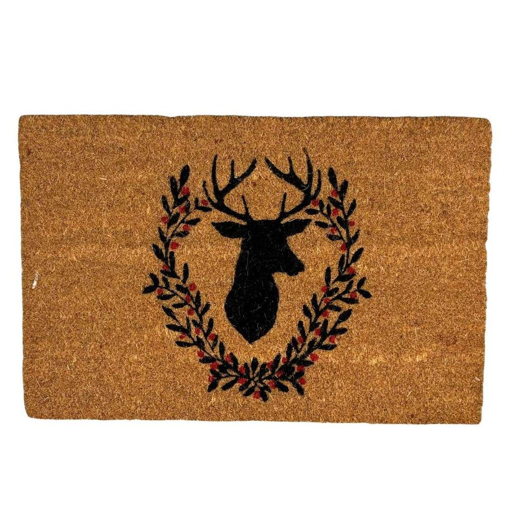 Pekná, jednoduchá rohožka v prírodnej farbe s obrázkom jeleňa bude ozdobou a vizitkou vašich vchodových dverí. Veľmi dobre vám poslúži aj na odstránenie nečistôt z podrážok vašich topánok. Gumový podklad zaručuje najlepšiu fixáciu k podlahe.