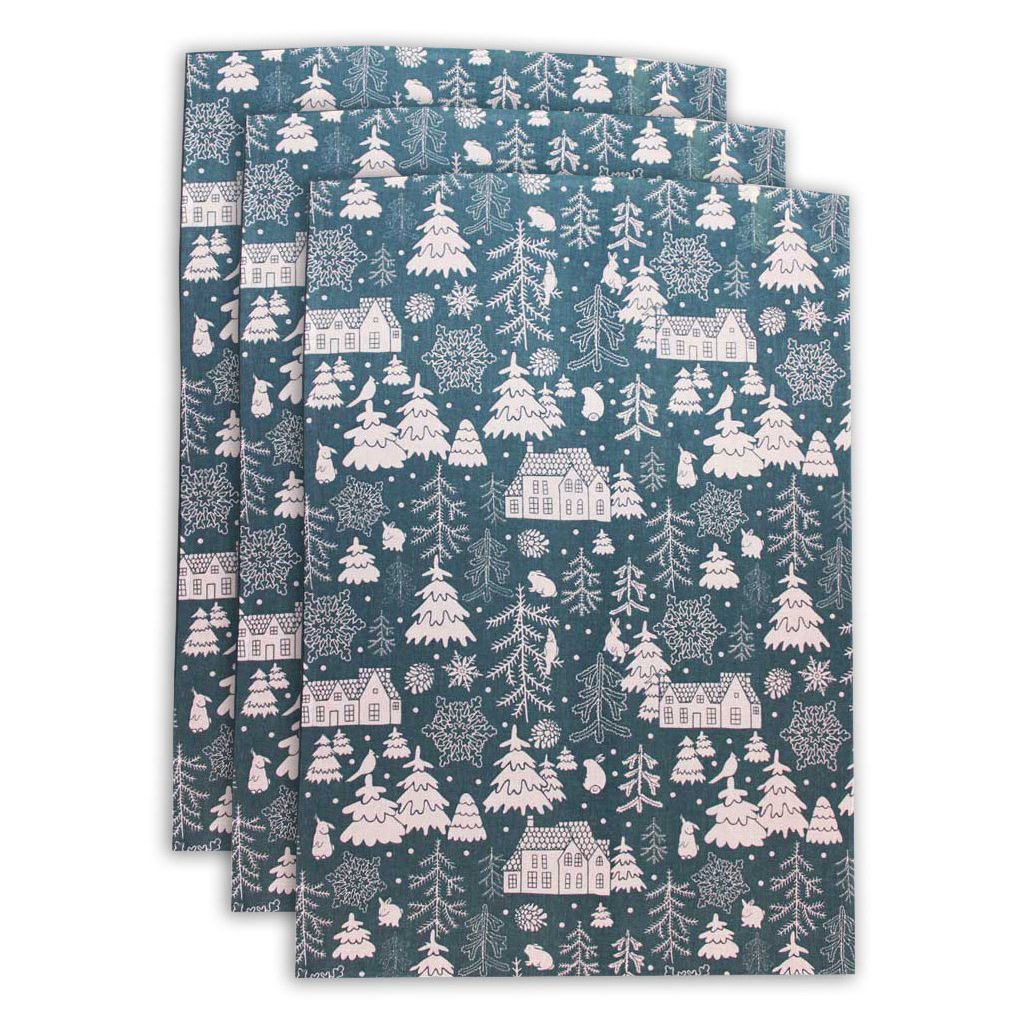 Súprava 3 kuchynských utierok z recyklovanej bavlny, 50*70 cm, motív Zimný les.