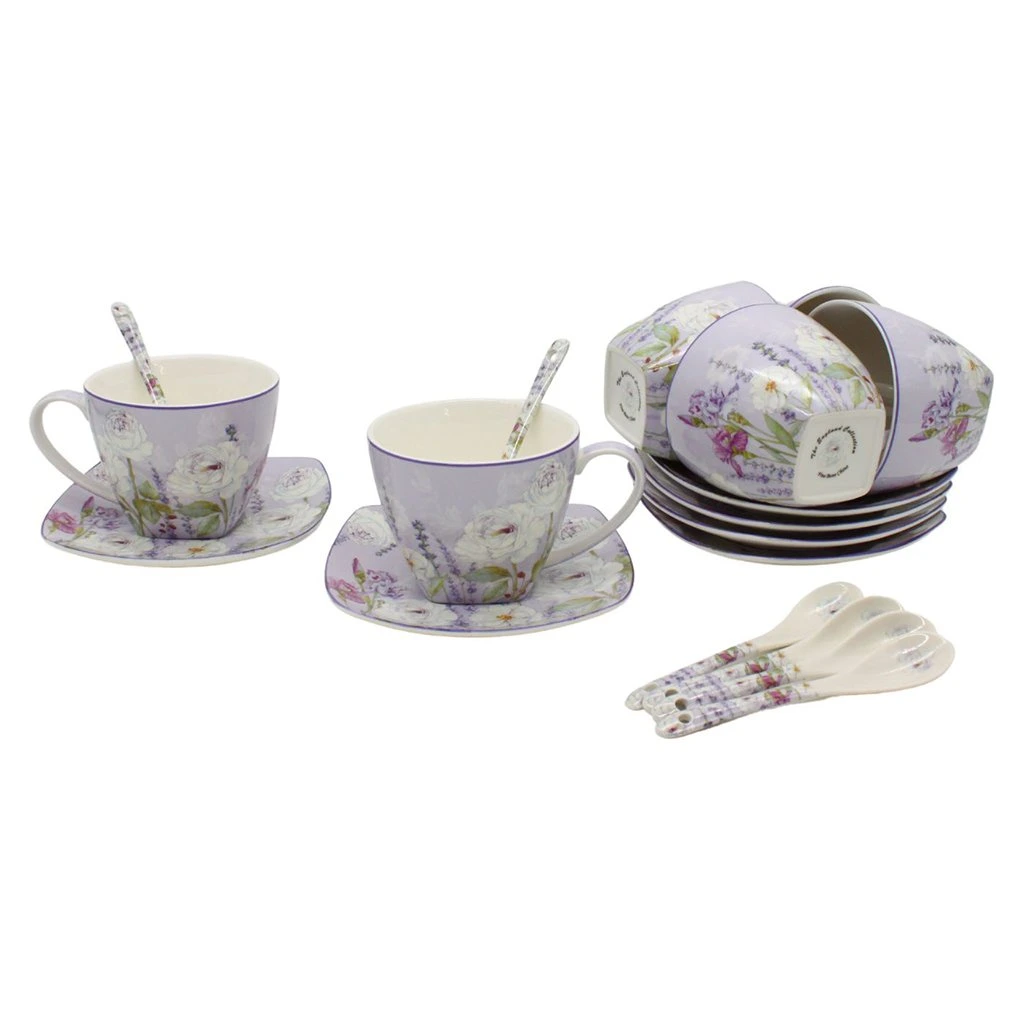 Elegantná, vysokokvalitná porcelánová súprava na čaj alebo kávu s jemným kvetinovým dekorom s levanduľou. Súprava pozostáva zo šiestich porcelánových šálok, podšálok a lyžičiek a je zabalená v darčekovej krabičke.