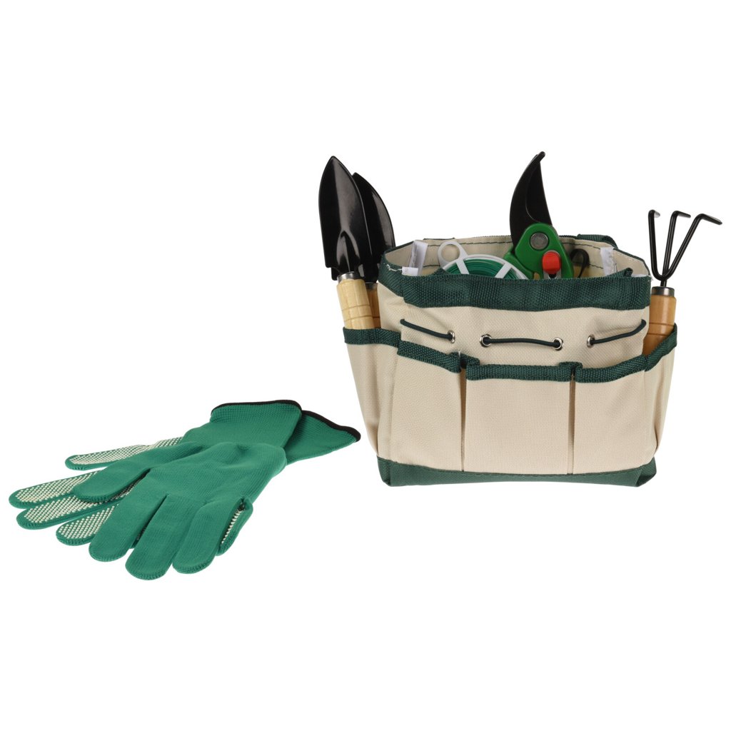 Praktická záhradná taška so 7 nástrojmi na prácu v záhrade.