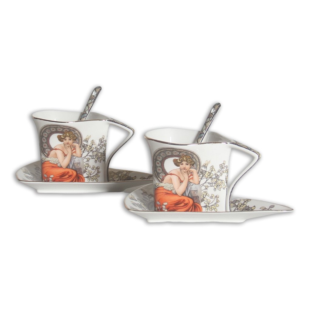Netradičná porcelánová sada šálok s podšálkami s dekórom z dielne slávneho českého maliara Alfonsa Muchy. Potešte milovníkov umenia. Sada je zabalená v darčekovej krabičke.