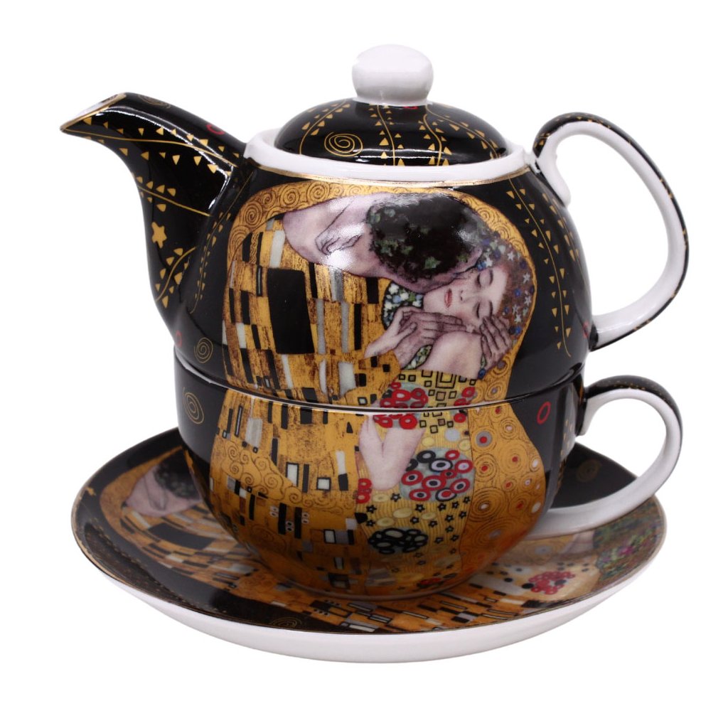 Exkluzívna porcelánová čajová súprava pre jedného, nazývaná aj Tea for one, je ideálna na chvíle oddychu. Vďaka krásnemu dekoru z diel Gustava Klimta si čaj z tejto súpravy naozaj vychutnáte. Čajová súprava pre jednu osobu obsahuje čajník, hrnček, podšálku a pokrievku. Všetko do seba krásne zapadá, vďaka čomu je aj manipulácia s horúcim nápojom o niečo bezpečnejšia.