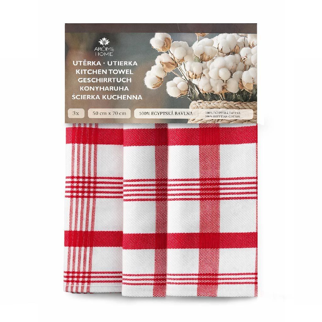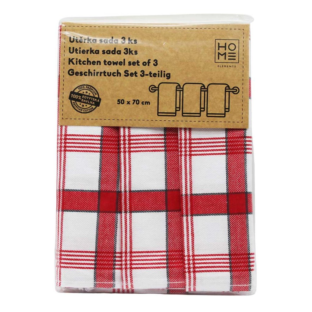 HOME ELEMENTS Súprava utierok z egyptskej bavlny 50*70 cm, 3 ks, Kocky červené