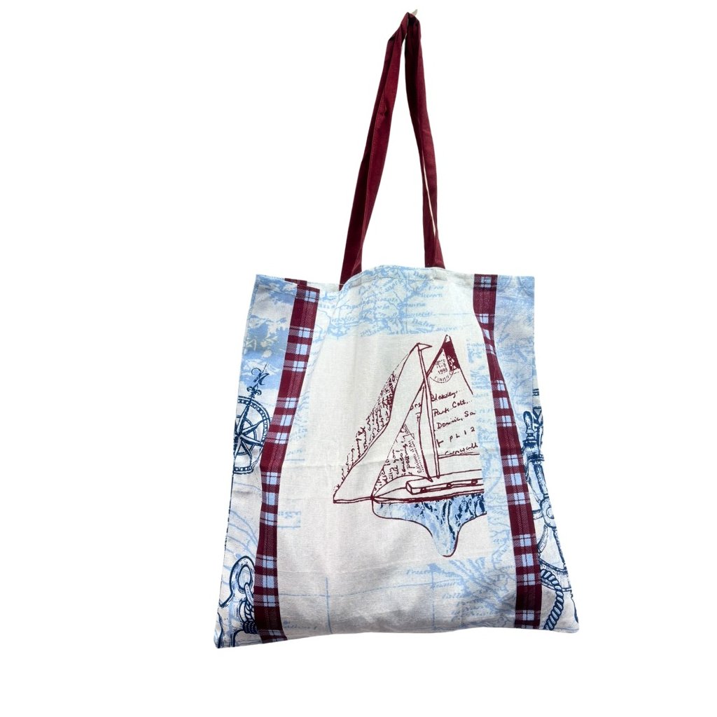 Látková taška s motívom plachetnice a kormidla sa výborne hodí na každodenný nákup. Taška unesie veľkú hmotnosť, pretože je vyrobená z kvalitnej bavlny. Možno ju nosiť cez rameno aj v ruke.
