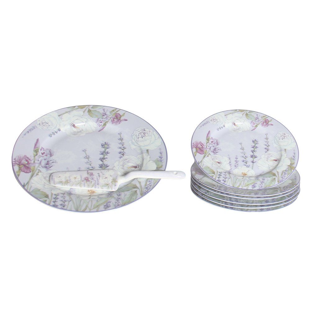 HOME ELEMENTS Tortová súprava: tortový tanier, 6 x tanier, tortová lyžica, Levanduľa