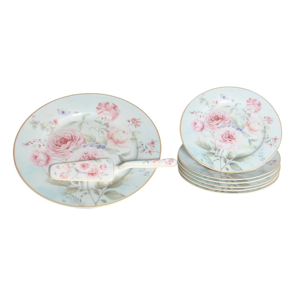 HOME ELEMENTS Tortová súprava: tortový tanier, 6 x tanier, tortová lyžica, Ruža
