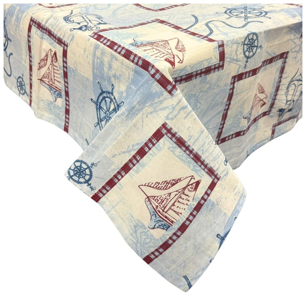 Obrus v námorníckom štýle ozdobí stôl v jedálni, na terase alebo v záhrade. Navyše ho môžete zladiť s utierkami, zásterou, podsedákmi a ďalším bytovým textilom s rovnakým motívom. Všetko nájdete na našom e-shope.