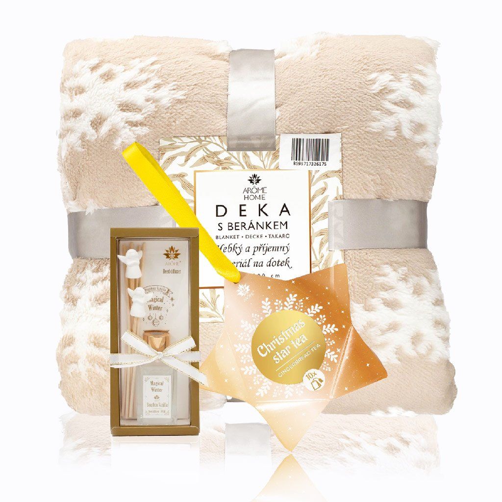 Doprajte sebe alebo svojim blízkym chvíle pokoja, vône a tepla s elegantnou vianočnou sadou, ktorá spája hebkosť mikroplyšovej deky s baránkom, lahodný čaj s perníkovou arómou a jemne voňajúci difuzér s vianočným dekorom. Ideálny darček na zimné večery plné pohody.