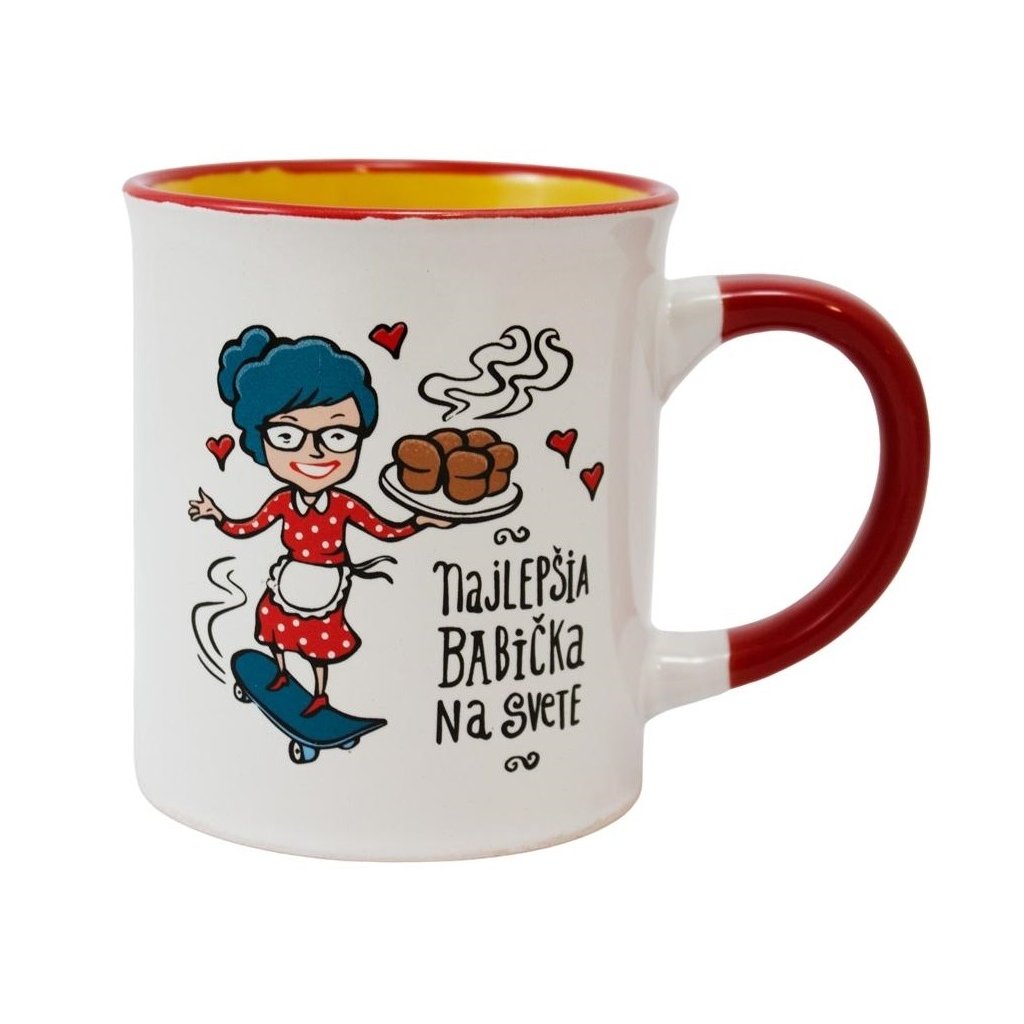 Keramický hrnček z kolekcie Najlepšia rodina. Tento hrnček urobí radosť nie len priaznivcom kávy či čaju ale hlavne Vašej babičke. Hrnček je vhodný do umývačky riadu i do mikrovlnnej trúby. Objem hrnčeka je 320 ml. Dodávame v peknej kartonovej krabičke s rovnakým motívom ako je na hrnčeku.