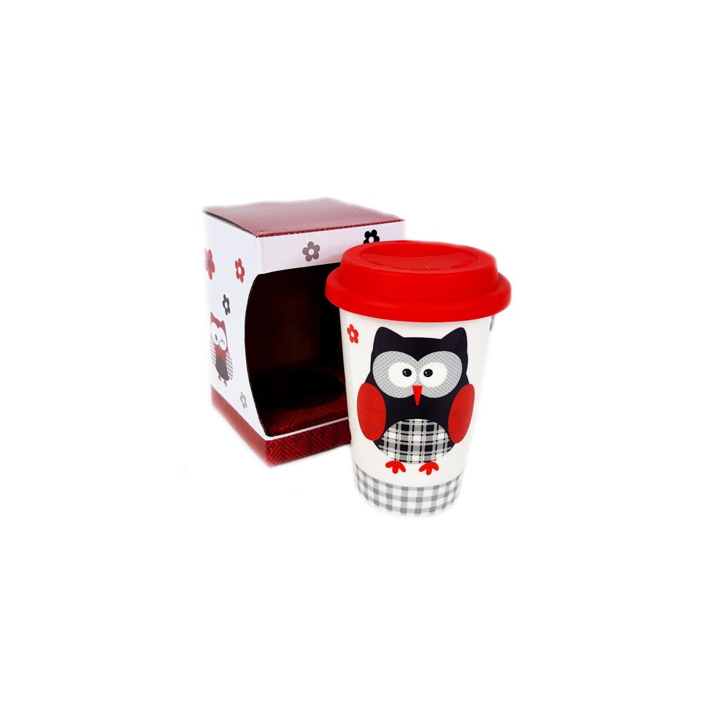 Hrnek porc. 420 ml s víčkem, sova černá - II.Jakost