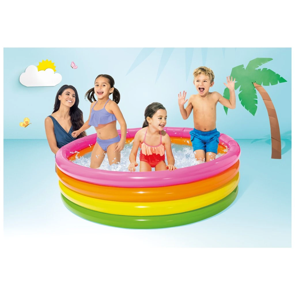 Detský nafukovací bazén INTEX Sunset Glow so štyrmi kruhmi, objem vody 617 litrov pri naplnení do výšky 37 cm.