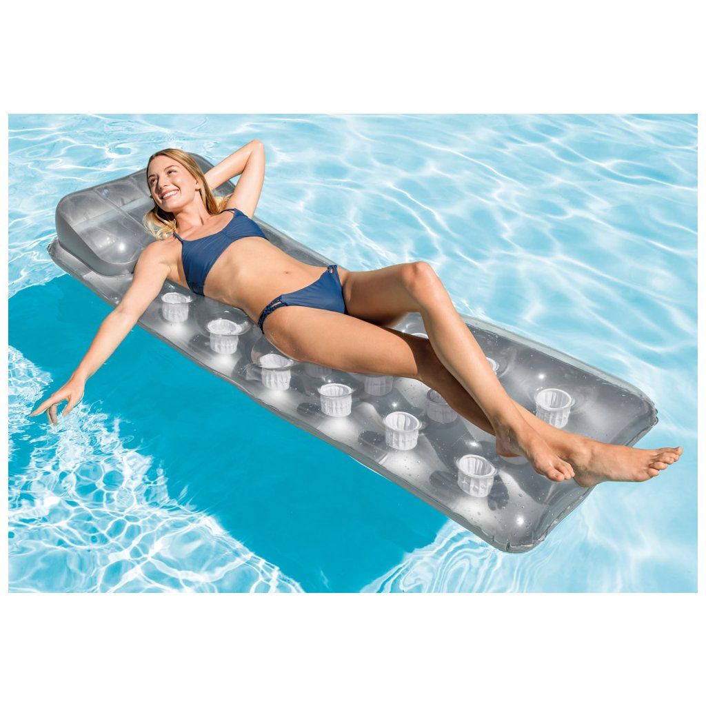 Nafukovacie lehátko so zabudovaným vankúšom je vyrobené z priehľadného a pevného vinylu. Lehátko je ideálne na relaxáciu pri vode, na pláži alebo pri bazéne.