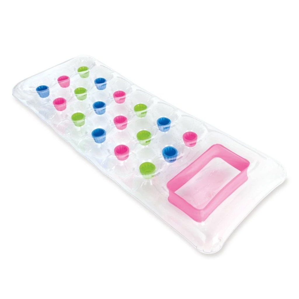 Nafukovacie lehátko so zabudovaným vankúšom je vyrobené z priehľadného a pevného vinylu. Lehátko je ideálne na relaxáciu pri vode, na pláži alebo pri bazéne.