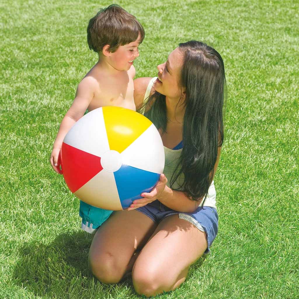 Skvelá hračka pre deti na pláži, na ihrisku alebo v bazéne. Nafukovacia lopta INTEX s farebnou potlačou s priemerom 51 cm ponúka veľa zábavy a rôznych hier pre celú rodinu.