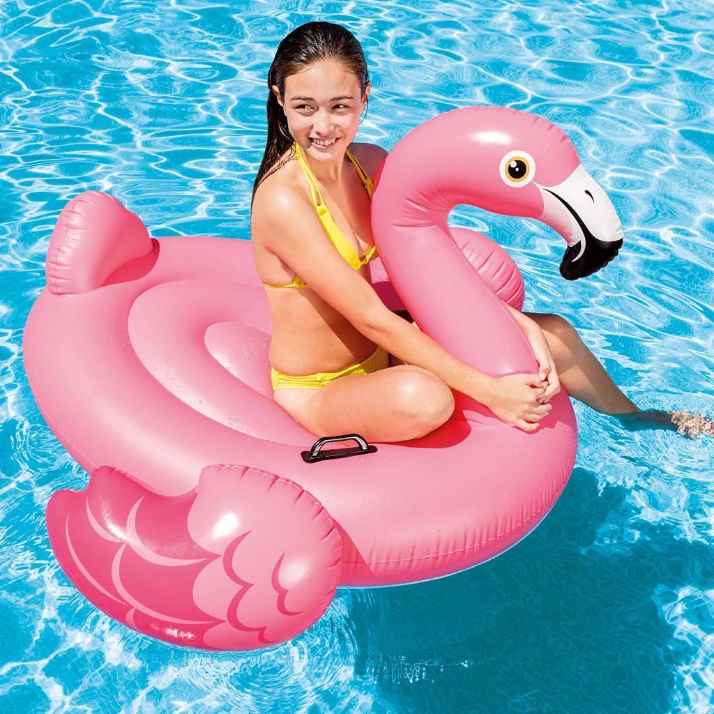 Nafukovací ostrov INTEX v tvare plameniaka je vďaka dvom plastovým držadlám úplne bezpečný. Po usadení sa deti môžu držať pevných rukovätí, ktoré zabezpečujú dobrú stabilitu aj pri šantení vo vode.