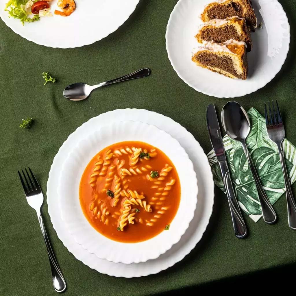 - Nadčasový dizajn – čisto biely porcelán sa hodí do akéhokoľvek interiéru a podčiarkuje eleganciu prestretého stola.