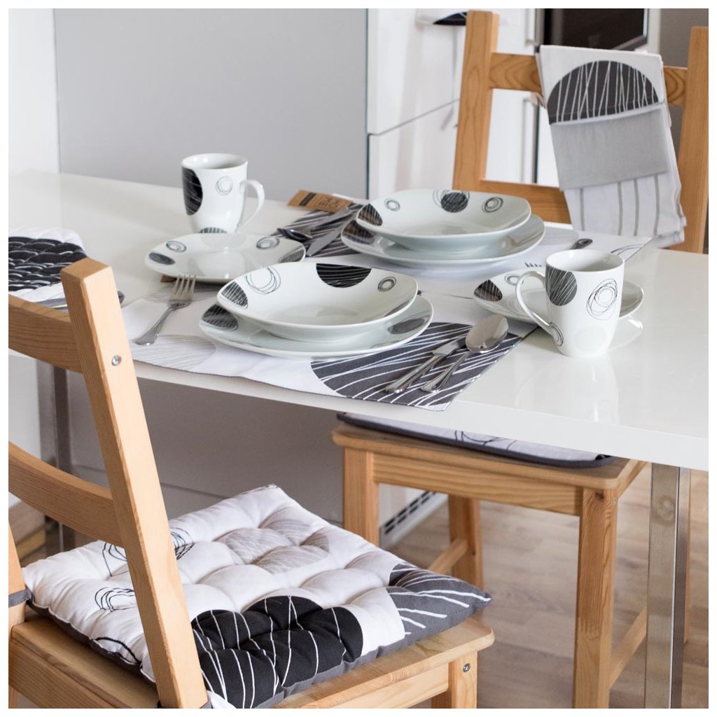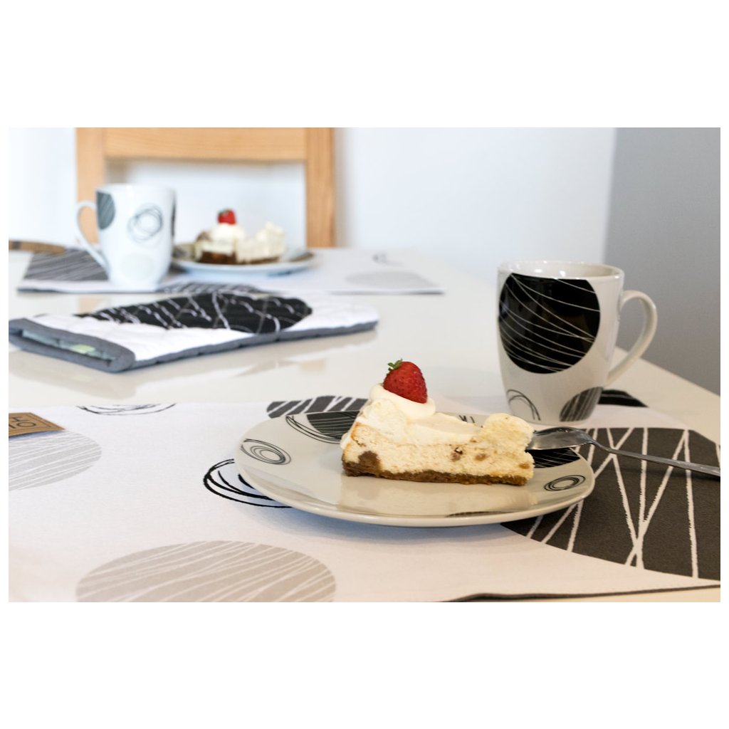 Kuchynská chňapka zo 100% bavlny je veľmi užitočný a praktický ochranný prostriedok proti spálení, ktorý by nemal chýbať v žiadnej domácnosti. Chňapku s decentným vzorom kruhov je možné doplniť o ďalšie produkty s rovnakým vzorom.